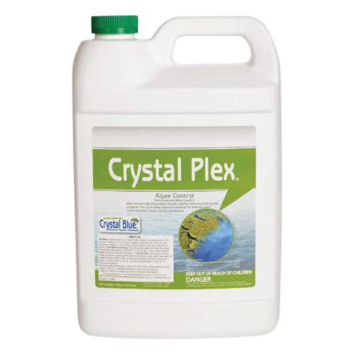 Crystal Plex is a liquid copper sulfate solution designed to kill and control algae and some aquatic plants including Hydrilla. Pond algae treatments should be done on actively growing algae and when water temperatures are at least 50F.