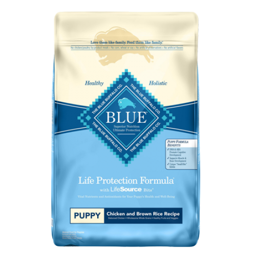BLUE Life Protection Formula Chicken and Brown Rice Recipe Food for Puppies is formulated to meet the nutritional levels established by the AAFCO Dog Food Nutrient Profiles for growth.