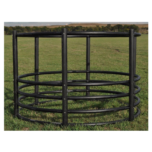 is used to secure 2" rings to 3" legs. The standard feeder is 8' in diameter and 66" high, and is lightweight, yet very durable. This feeder is not recommended for cattle.