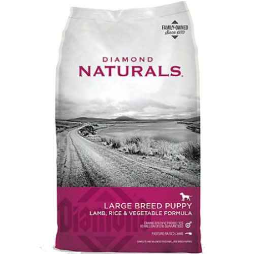 Large breed puppies need the right nutrients to fuel their growing bodies. Diamond Naturals provides complete, holistic nutrition for your puppy.