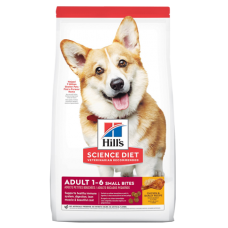 Hill's Science Diet Small Bites Adult dry dog food is specially formulated to fuel the energy needs of dogs during the prime of their life. Delicious chicken flavor for those that prefer variety & made with high quality, easy-to-digest ingredients in a small bite size.