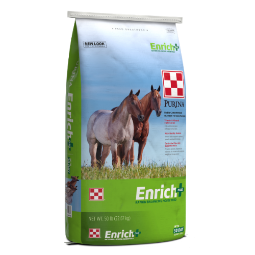 Enrich Plus Ration Balancing Feed adds necessary nutrients to your horse’s diet. Enrich Plus is a concentrated, pelleted ration balancing horse feed that may be fed as a horse’s sole ration along with quality hay or pasture to provide the proper balance of protein, vitamins and minerals without unnecessary calories. It can also be fed with unfortified whole grains.