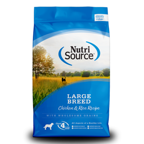 NutriSource Large Breed Adult Chicken and Rice is ideal for breeds that mature at more than 50 lbs. Holistically formulated so your pet received super premium nutrition and easy-to-digest food. Plus, it is for balanced muscular and skeletal maintenance in large and giant breeds. Our large breed meals are created specifically for bigger dogs, utilizing adjusted levels of calcium and phosphorus matched with balanced protein, fat, carbohydrates, and calories to fuel large breed pups to their fullest potential.