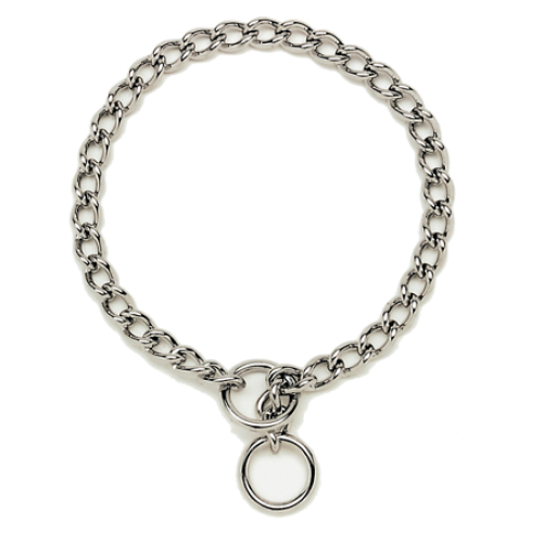 Our Titan Dog Chain Training Collar is argon welded and chrome plated for maximum strength and durability. It will not tarnish, rust or break. Available in a variety of lengths and gauges to fit most dogs. Chain training collars are safe, effective training tools with proper use. They are not to be used for tie out.