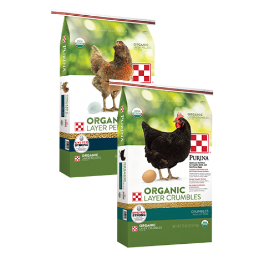 - Feed Purina® Organic Layer Pellets or Crumbles with the Oyster Strong® System as the sole ration to laying chickens after 18 weeks of age and throughout the laying cycle.