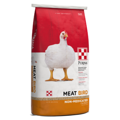 Broiler chicks require 38 different nutrients to start and grow strong. Purina Meat Bird Poultry Feed is fortified with all of the nutrients required to provide for uniform growth, proper muscle development and top overall health. No supplementation is required with this versatile and complete feed specifically formulated for broiler chickens requiring high levels of energy and growth.
