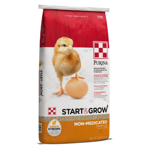 Greatness starts on day one. Purina Start & Grow chicken feed helps your chicks develop into happy hens. Raise chicks from day one to week 18 when they’re ready to start laying, with feed that offers each of the 38 unique nutrients chicks need to grow healthy and strong. This means all the nutrients baby chicks need are included in the bag, no need to supplement.Also available as a medicated feed with amprolium (not an antibiotic).
