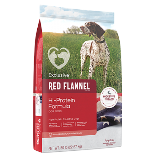 Red Flannel Hi-Protein Formula is specifically designed for active dogs that prefer a high protein formula. It supplies 100% complete and balanced nutrition for your dog at every life stage.