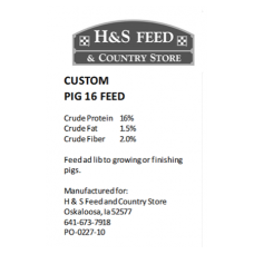 H&S Custom Pig 16 Feed is for growing or finishing pigs and can be fed ad lib. Contact the ..