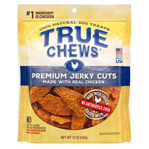 True Chews Premium Jerky Cuts with Real Chicken Dog Treats are made with U.S.-sourced chicken that’s raised without antibiotics, hormones or steroids for a high-protein jerky treat that satisfies and nourishes in every bite. Since they contain zero corn, wheat, soy or anything artificial, you can truly feel good about treating your pal every day. Make your canine companion’s journey a little better each day with a delicious, premium-quality treat you can trust because it’s made right here in the USA using only the finest natural ingredients.