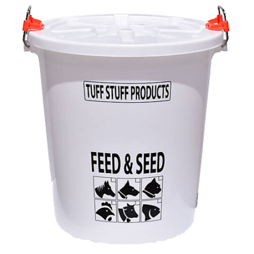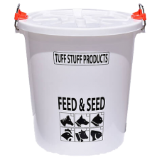 The translucent Tuff Stuff Feed and Seed Storage with Locking Lid features a double-locking system. The feed bucket is ideal for chicken, wild birds, fish, dogs, cats, feed and all kinds of dry seeds. The heavy-duty plastic construction is UV and weather resistant ensuring that this storage pail won’t rust or fade if left outside.