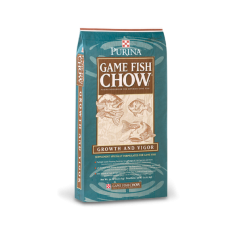 Complete and balanced 32%- protein, extruded, multi-particle size product designed to be fed to a wide variety of fish species and wide range of sizes of fish. Purina Game Fish Chow feed is rich in nutrients essential for optimal fish growth, reproduction and overall health. It works naturally with everyday food sources in your water to address poor nutrition, which is the most significant limiting factor in the size and health of forage fish.